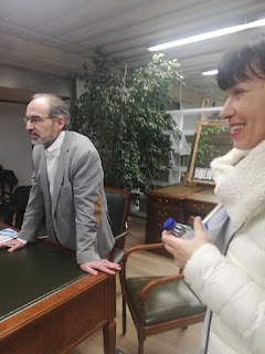 Con la sala "Taller de ideas" repleta y tras las palabras previas de Lidia López Miguel, editoria de Lastura, fui leyendo y desgranando aspectos del libro acompañado en la lectura de los poemas en portugués de la poeta Celia Cañadas.